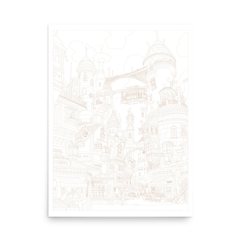 18 x 24 inch. *colored image is only for reference. You’ll recieve a poster with line drawings with white background.